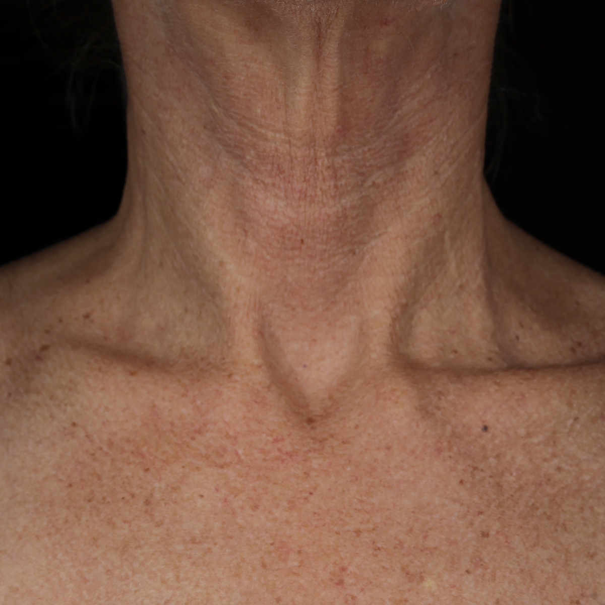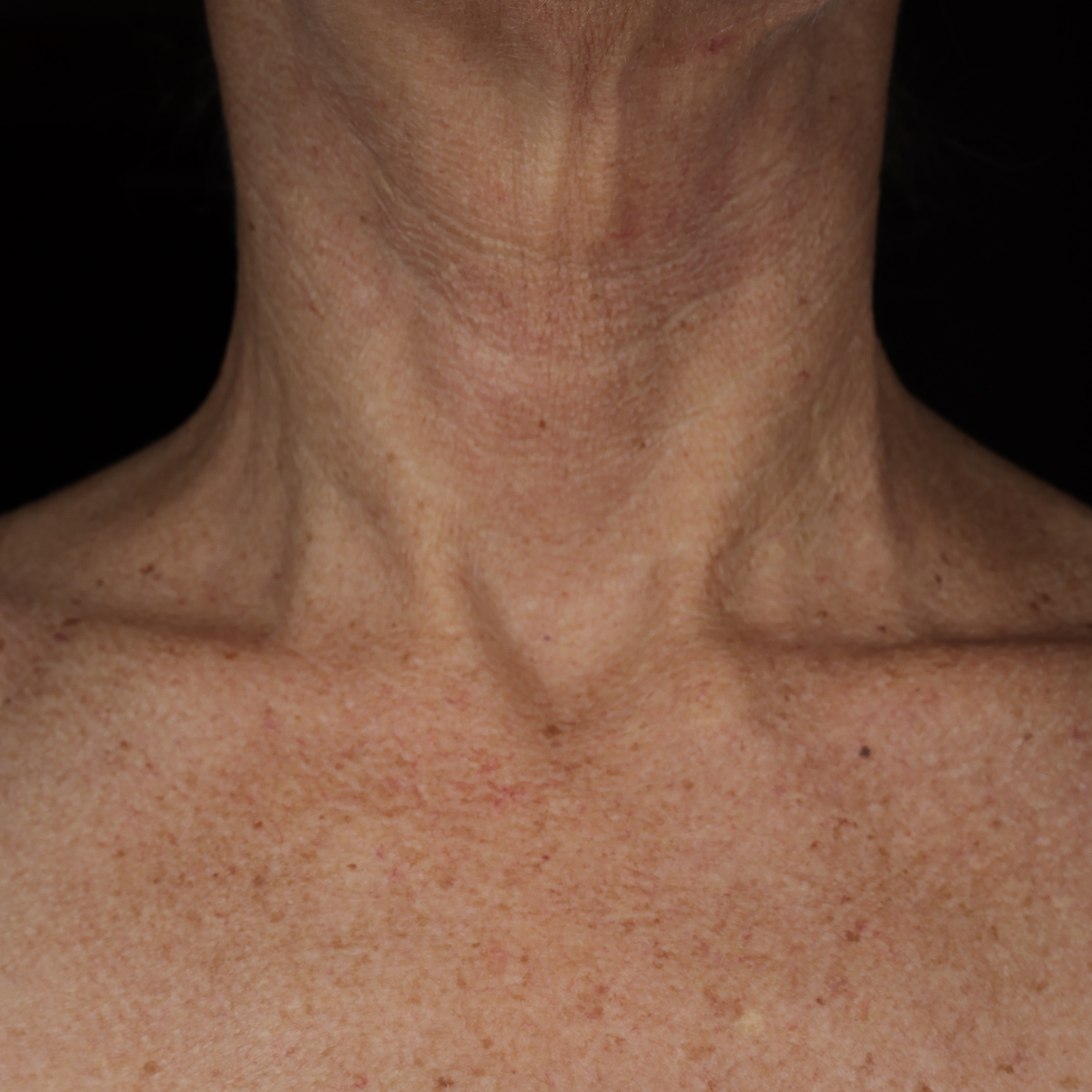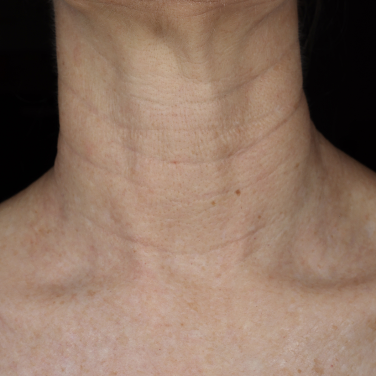 ● Firming: Correcting signs of aging on the neck, chest, and décolleté, such as fine lines, wrinkles, crepiness, and sagging, it visibly lifts and tightens skin.